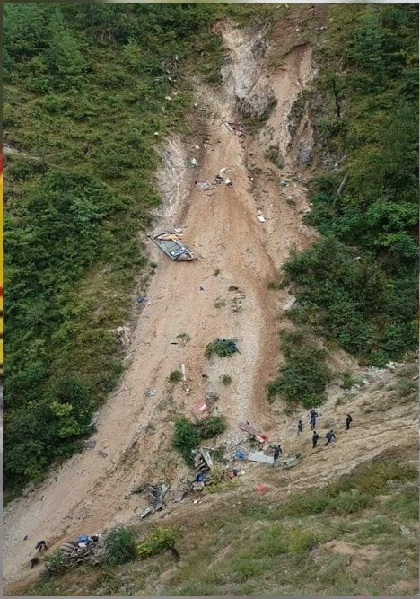 प्रदेश प्रहरी कार्यालयका प्रहरी निरीक्षक जीवन लामिछानेले चालक दलबहादुर रावलको मात्र सनाखत भएको बताए । प्रहरीले चालकको सिटमुनिको टायर पञ्चर भई दुर्घटना भएको हुनसक्ने अनुमान गरेको छ । यद्यपि दुर्घटनाको कारण थप अनुसन्धानबाट मात्र यकिन हुने प्रदेश प्रहरी कार्यालयले जनाएको छ । बस सडकबाट अन्दाजी ३०० मिटर तल खसेको थियो । नेपालगञ्जबाट सोमबार छुटेको उक्त बसमा ४५ यात्रु सवार थिए ।