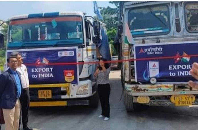 अर्घाखाँची सिमेन्ट अब भारतमा समेत निर्यात हुन थालेकाे छ । धेरै दिनकाे प्रयास पछि सफलता पाएकाे अर्घाखाची सिमेन्ट भारतमा बजार पाएकाे हाे ।