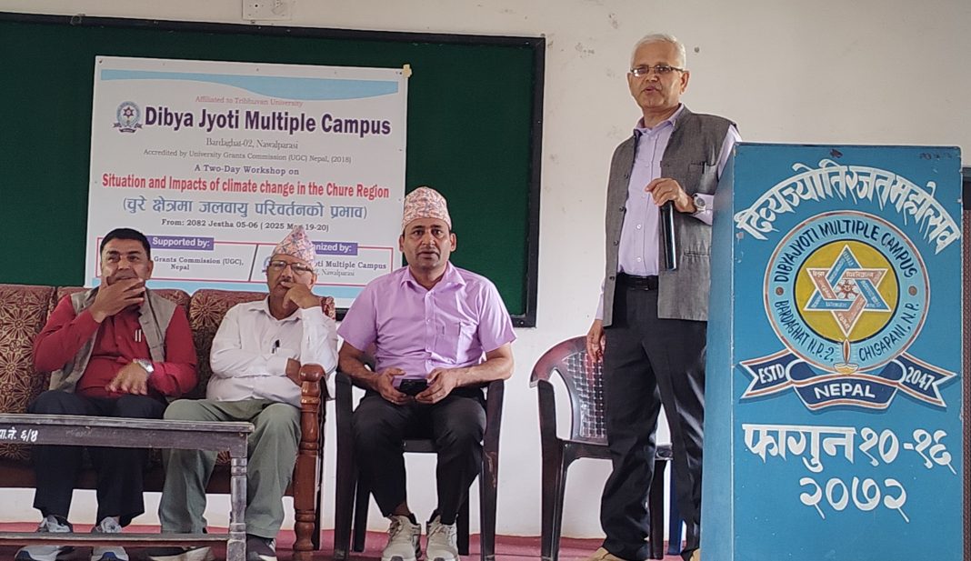 पप्पु रेग्मी, बर्दघाट। दिव्यज्योति बहुमुखी क्याम्पस, बर्दघाट–२ चिसापानी नवलपरासीमा अनुसन्धान व्यवस्थापन सेलको आयोजना तथा विश्वविद्यालय अनुदान आयोगको सहयोगमा “चुरे क्षेत्रमा जलवायुकाे प्रभाव” विषयक कार्यशाला गोष्ठि सम्पन्न भएको छ।