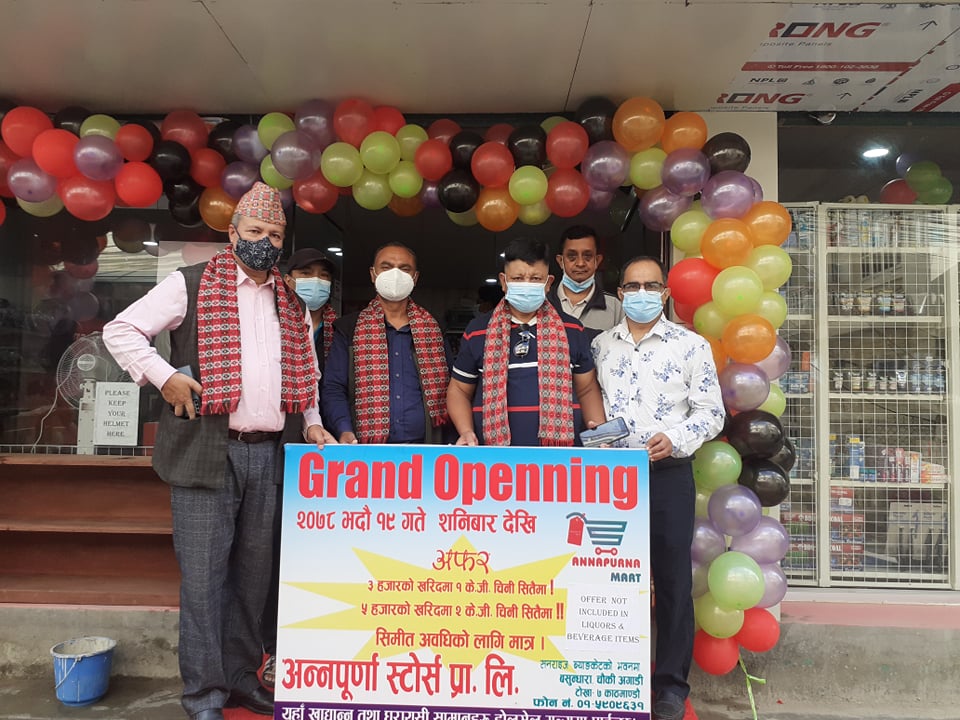 काठमाडौंको टोखा नगरपालिका–७ बसुन्धारा चौकीमा अन्नपूर्णा स्टोर्स प्रालि ( मार्ट ) ले सुपथ मूल्यमा दैनिक उपभोग्य खाद्य र ग्रोसरी सामाग्रीको बिक्री सेवा सुभारम्भ गरेको छ । निम्न र मध्यम वर्गीय सर्वसाधारणलाई लक्षित गरी मार्टबाट सेवा सुचारु गरेको कम्पनीले जनाएको छ । टोखा नगरपालिकाका मेयर प्रकाश अधिकारीले शनिबार मार्टको उद्घाटन गर्नुभयो । मार्ट उद्घाटन गर्दै मेयर अधिकारीले टोखाका सबै वडामा स्थानीयलाई सुपथ मूल्यमा वर्षैभरी सेवा दिनेगरी साझा पसल संचालनमा ल्याउने बताउनुभयो । अन्नपूर्ण मार्टसँग सहकार्य गरेर साझा पसल अवधारणा सफल पार्न सकिने अधिकारीले बताउनुभयो । मार्ट उद्घाटन कार्यक्रममा टोखा वडा नम्बर ७ का वडाध्यक्ष नरोत्तम रानाले सुपथ मूल्यमा सेवा दिन मार्ट सफल हुने विश्वास व्यक्त गर्नुभयो ।