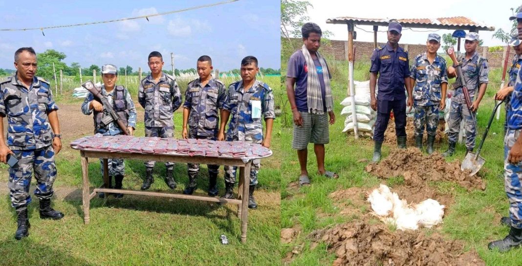 पर्साको ठोरी गाउँपालिकाबाट सशस्त्र प्रहरीले प्रतिबन्धित बिस्फोट पदार्थ पटका बरामद गरेको छ । सशास्त्र प्रहरी बोडर आउट पोस्ट सुबर्णपुरबाट सशास्त्र प्रहरी निरीक्षक दिपक नापीतको नेतृत्वमा रहेको सशास्त्र प्रहरीको टोलिले नियमीत चेक जाचको क्रममा ठोरी गाउँपालिका वडा न ५ बाघमोर्चा पुलमा ठोरीबाट काठमान्डो जाँदै गरेको यात्रु बाहक बसलाई चेक जाँच गर्दा बसबाट दुई सय प्याकेट पटखा बरामद गरेको हो । भारतबाट अबैध रुपमा नेपाल भित्र्याइ काठमान्डो लेजानका लागि बसमा लोड गरिएको सुचना प्राप्त भएपछि सशास्त्र प्रहरीले चेक जाँच गर्दा बसमा उत्त परिमाण पटका बरामद गरेको सशास्त्र प्रहरी बल १३ नाम्बर हेड कवाटर पर्साले जनाएको छ ।बरामद गरिएको पटका स्थानीय भद्रभलादमि र सन्चारकर्मिको रोहवरमा बोडरआउट पोस्टको परिसरमा खाल्डोमा पुरेर नस्ट गरिएको सशास्त्र प्रहरी बल १३ नाम्बर गणका सशास्त्र प्रहरी उपरिक्षक तेजप्रसाद पोखरेलले जनकारी दिनुभयो छ्न ।यस्तै पर्साको जिराभवानी गाउँ पालिकाबाट पनि सशास्त्र प्रहरीले भारतबाट अबैध रुपमा नेपाल भित्र्याउदै गरेको आवस्थामा भारतिय बोइलर कुखुरा बरामद गरेको छ। सशास्त्र प्रहरी बोडर आउट पोस्त महादेवपटिका सशास्त्र प्रहरी निरीक्षक रमेश साखको नेतृत्वमा गएको सशास्त्र प्रहरीको गस्ति टोलिले जिराभवानी गाउँपालिका वडा न १ जगतिया गाउँबाट ३० वटा बोइलर कुखुरा बरामद गरेको हो ।बरामद गरिएको कुखुरा स्थानीय भद्रभालदमि र सन्चारकर्मि साथै नेपाल प्रहरीको रोहबरमा नस्ट गरिएको सशास्त्र प्रहरी बल १३ नाम्बर गणका सशास्त्र प्रहरी उपरिक्षक तेजप्रसाद पोखरेलले जनकारी दिनु भयो ।