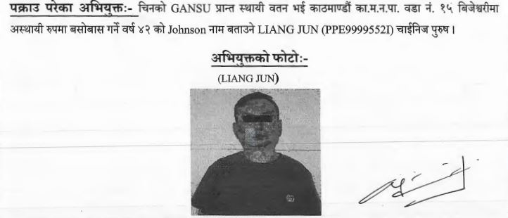 प्रहरीका अनुसार ४२ वर्षीय लियाङ आफूलाई ‘जोन्सन’ भनेर चिनाउँथे। उनी सन् २०१८ देखि नेपाल आउन थालेका थिए। उनी भिजिट, विद्यार्थी र व्यापार भिसामा नेपाल आउजाउ गर्थे। पेशा र उद्देश्य परिवर्तन गरेर उनी नेपालमा आवातजावत गरिरहेका थिए। कृषि, आयात-निर्यात र व्यापार लगायतका पेशा गर्ने बताए पनि उनका गैरकानूनी कार्यबारे भने अध्यागमन विभाग, प्रहरी जस्ता सरकारी निकाय लामो समयसम्म बेखबर जस्तै बने।