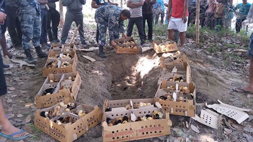 सशस्त्र प्रहरी प्रहरीलाई देखेर तस्करहरु २५ कार्टुन कुखुराको चल्ला गहुबालीमा फ्याकेर भागेका थिए । नियन्त्रणमा लिइएकाे साे चल्ला आज स्थानियबासिन्दा, पत्रकार, सुरक्षाकर्मी तथा महेशपुरका पशु क्वारेनटाईन चेक पाेस्टका अधिकृत खडग बहादुर सिंहको राेहबरमा नष्ट गरिएकाे छ ।
