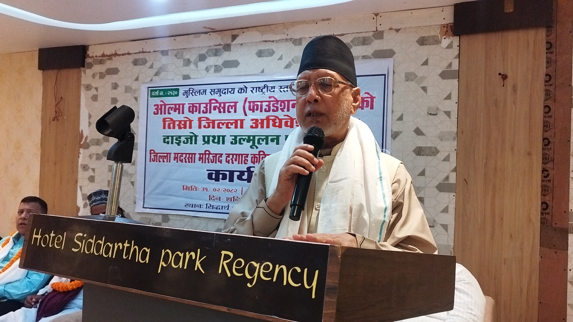 अधिवेशनमा माैलाना खुश्बुद्दिन अन्सारीकाे अध्यक्षतामा कार्यक्रम सञ्चालित भइरहेका बेला मियाँले सम्बोधन गर्दै नवगठित कमिटीले समाजका लागि उपलब्धिमूलक कार्य गर्न सक्ने विश्वास व्यक्त गरे। उहाँले ओल्मा, माैलवी तथा माैलानाजस्ता धर्मगुरुहरू एकजुट भई चाहना राखेमा समाजमा सकारात्मक परिवर्तन चाँडै ल्याउन सकिने धारणा राख्नुभयाे।
