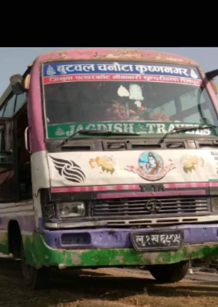 कृष्णनगर नगरपालिका वडा नं.-८ गणेश पलाई फ्याक्ट्री नजिकै चन्द्रौटा कृष्णनगर सडक खण्डमा चन्द्रौटा बाट कृष्णनगर तर्फ जाँदै गरेको लु १ ख ६९०९ बसले बाटो काटने क्रममा जिल्ला कपिलबस्तु कृष्णनगर नगरपालिका वडा नं. ८ डगरमरुवा बस्ने बर्ष ७५ कि तारमति कोईरीलाई ठक्कर दिँदा अनुहारको बिभिन्न भागमा चोट र बिपरित दिशा बाट आउदै गरेको साईकल यात्री जिल्ला कपिलबस्तु कृष्णनगर नगरपालिका -५ डबारा बस्ने बर्ष २०को बिष्णु रहिदाशलाई सोही बसले ठक्कर दिदाँ दाहिने हातको औँलामा र बायाँ खुट्टामा चोट दुबै घाईतेलाई उपचारको लागि शिबराज अस्पताल बहादुरगंज कपिलबस्तु पठाईएकोमा जिल्ला कपिलबस्तु कृष्णनगर नगरपालिका वडा नं. ८ डगरमरुवा बस्ने बर्ष ७५ कि तारमति कोईरीको उपचारको क्रममा ऐ.१२:४५ बजेको समयमा मृत्यु भएको । बस र साईकल ईलाका प्रहरी कार्यालय बहादुरगंजको नियन्त्रणमा र बस चालक ईप्रका कृष्णनगरको नियन्त्रणमा रहेकाे स्रनेतले जनाएकाे छ ।