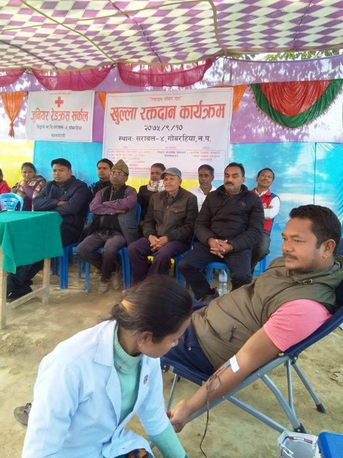 नवलपरासीको सरावल गाउँपालिका वडा नं. ४ गाेबरहियामा अाज खुल्ला रक्तदान कार्यक्रम सम्पन्न छ।