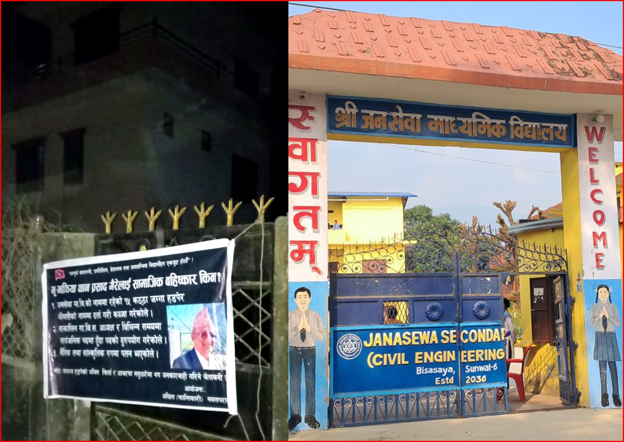 जनसेवा मावि सुनवल–६ विशासयको जग्गामध्ये १५ कठ्ठा जग्गा गैरेले दर्ता गरी बिक्री गरेकोले उनलाई सामाजिक बहिष्कार गर्न आब्हान सहित बुधवार क्रान्तिकारीले सुनवल–१ सोमनाथस्थित उनको घरको गेटमा चेतावनीस्वरुप कालो ब्यानर राखेको हो । मोहन बैद्य ‘किरण’ नेतृत्वको क्रान्तिकारी कम्युनिस्ट पार्टी, नेपाल सम्बद्ध बिद्यार्थी संगठनले गैरेको घरको गेटमा राखेको कालो ब्यानरमा गैरेलाई विभिन्न ३ वटा अभियोग लगाएको छ ।