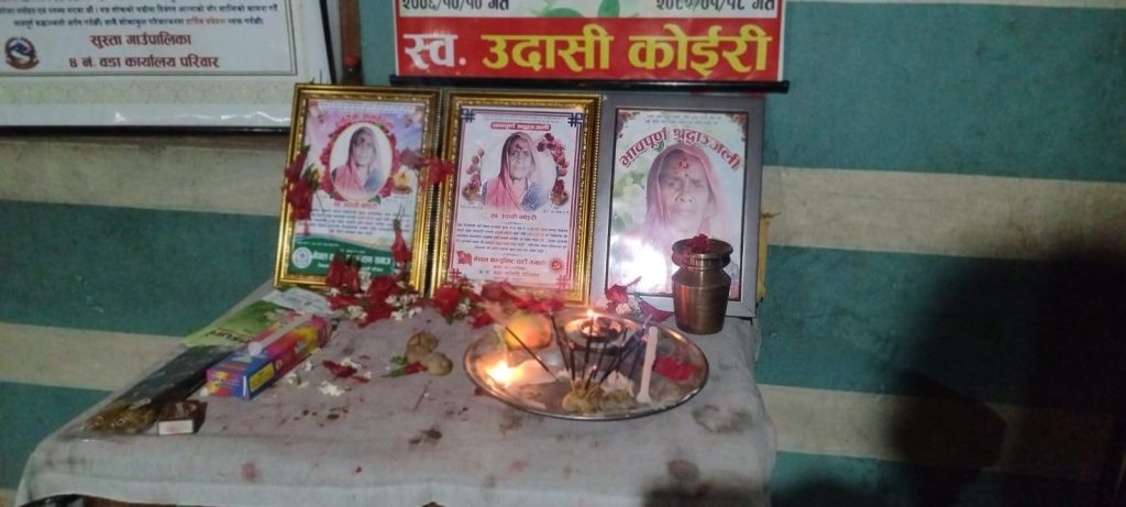 सचिव दिनदयाल की आमा स्व. उदासी देवी काेइरीकाे ७६ वर्षकाे उमेरमा असामयिक निधन भएकाे हाे । उनका २ छाेरा र ४ जना छाेरीहरू हुनुहुन्छ । समाजले बैशाख ३० गतेका दिन शाेक सभा सम्पन्न गरेकाे हाे ।