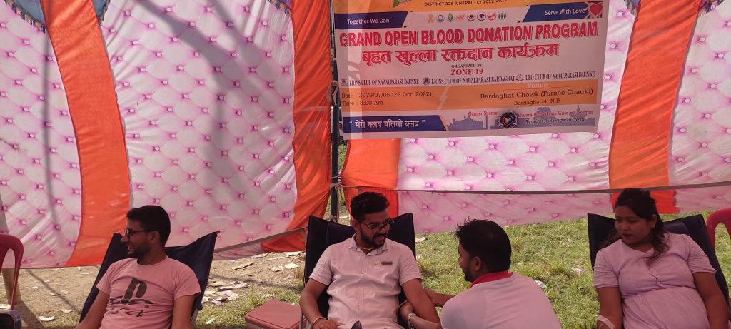 लायन्स क्लब अफ नवलपरासी बर्दघाटका संस्थापक अध्यक्ष एवं ईन्टरनेशनल लायन्स क्लब अफ नेपाल (जोन १९ ) की अध्यक्ष कमला शर्मा बस्यालको अध्यक्षता तथा बर्दघाट नगरपालिकाका नगर प्रमुख शम्भुलाल श्रेष्ठको प्रमुख आतिथ्यतामा सम्पन्न कार्यक्रममा बोल्दै अध्यक्ष शर्माले हाल देशमा डेंगुको प्रकोप बढिरहदा विभिन्न अस्पतालहरुमा रगतको अभाव देखिएको हुदा क्लबको सामाजिक उत्तरदायित्तव अन्तर्गत खुल्ला रक्तदानको आयोजनाको गरिएको बताउनुभयो ।