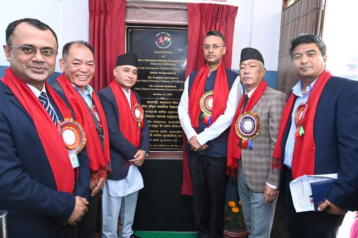 भारत सरकारको नेपाली रुपैयाँ  १.९२ करोड आर्थिक सहयोगमा काठमाडौंको बालुवाटारस्थित श्री महेन्द्र राष्ट्रिय माध्यमिक विद्यालयका लागि निर्मित विद्यालय भवनको भारतीय राजदूतावास, काठमाडौंका नियोग उप-प्रमुख  प्रसन्न श्रीवास्तव र जिल्ला समन्वय समिति, काठमाडौंका प्रमुख सन्तोष बुढाथोकीले आज संयुक्त रुपमा उद्घाटन गरी औपचारिक रुपमा हस्तान्तरण गर्नुभयो ।