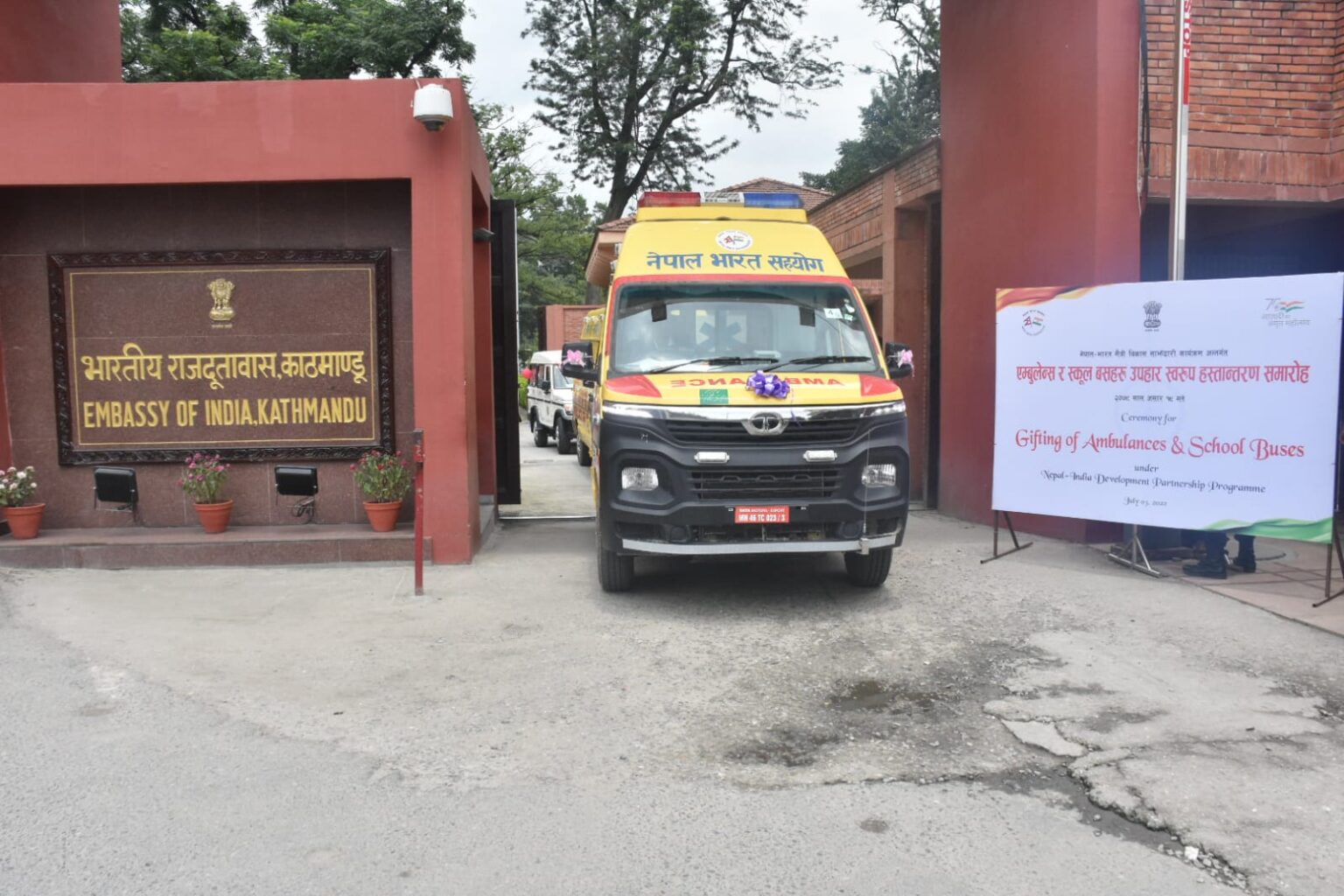भारत सरकारले नेपालका विभिन्न जिल्लामा रहेका संस्थाहरूलाई ७५ वटा एम्बुलेन्स र १७ वटा विद्यालय बस उपहारस्वरुप प्रदान गरेको छ ।