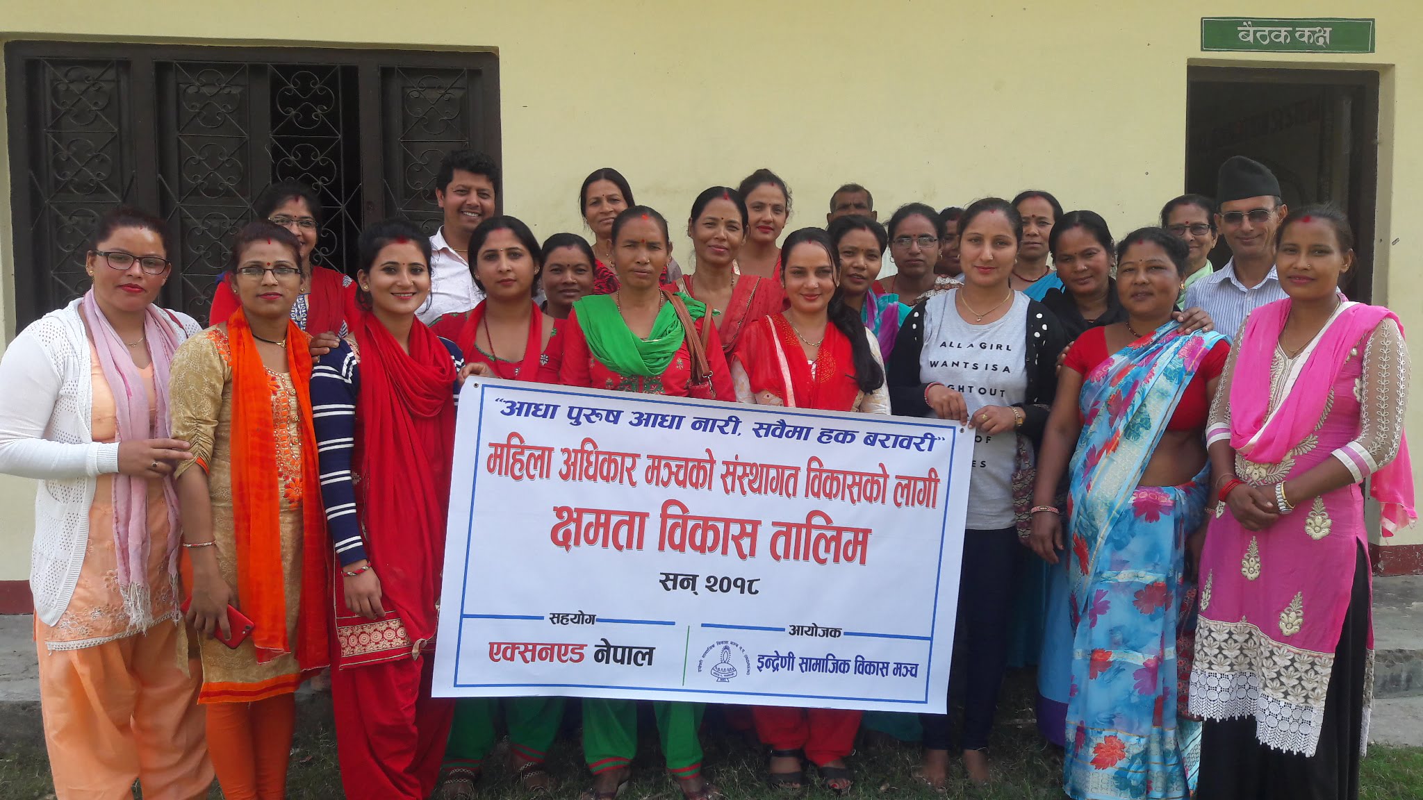 आधा पुरुष आधा नारी, सबैमा हक बराबरी भन्ने मुल नाराका साथ इन्द्रेणी सामाजिक बिकास मञ्च बर्दघाट नगरपालिका ९ भुताहा स्थानिय अधिकार कार्यक्रमको आयोजनामा र एक्सन एड नेपालको सहयोगमा महिला अधिकार मञ्चको संस्थागत बिकासको लागी दुई दिने क्षमता बिकास तालिम प्रतापपुर गाउँपालिकाको गोपिगञ्जमा सम्पन्न भएको छ ।