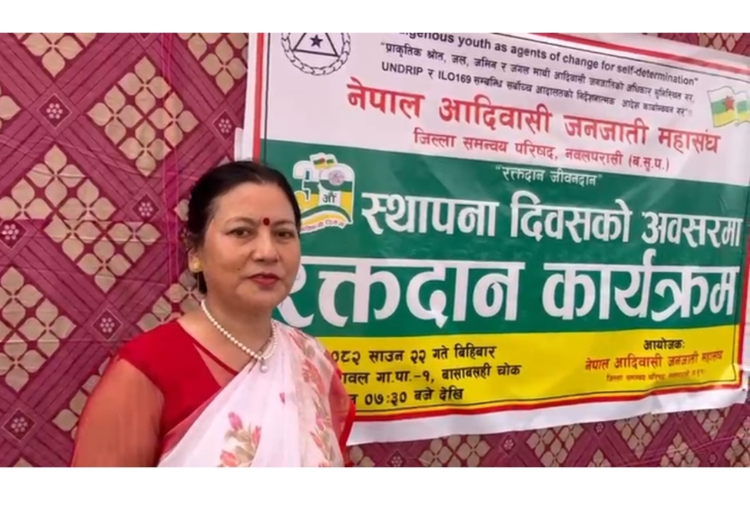 ३१औं विश्व आदिवासी दिवसको अवसरमा नेपाल आदिवासी जनजाति महासंघ जिल्ला समन्वय परिषद् पश्चिम नवलपरासीले सरावल गाउँपालिका वडा नम्बर –१, बासा चोकमा वृहत रक्तदान कार्यक्रम विहिवार सम्पन्न गरेको छ।